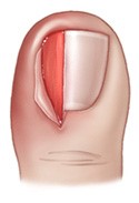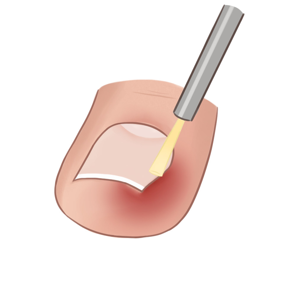 手術治療: 以局部麻醉方式, 手術去除嵌甲部份。必須清除甲基質以防止趾甲重生