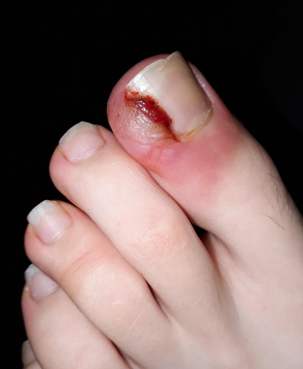 由於指甲的尖端向甲床兩側的皮下組織內生長,導致指甲四周的皮膚出現紅腫或嚴重至化膿性感染。